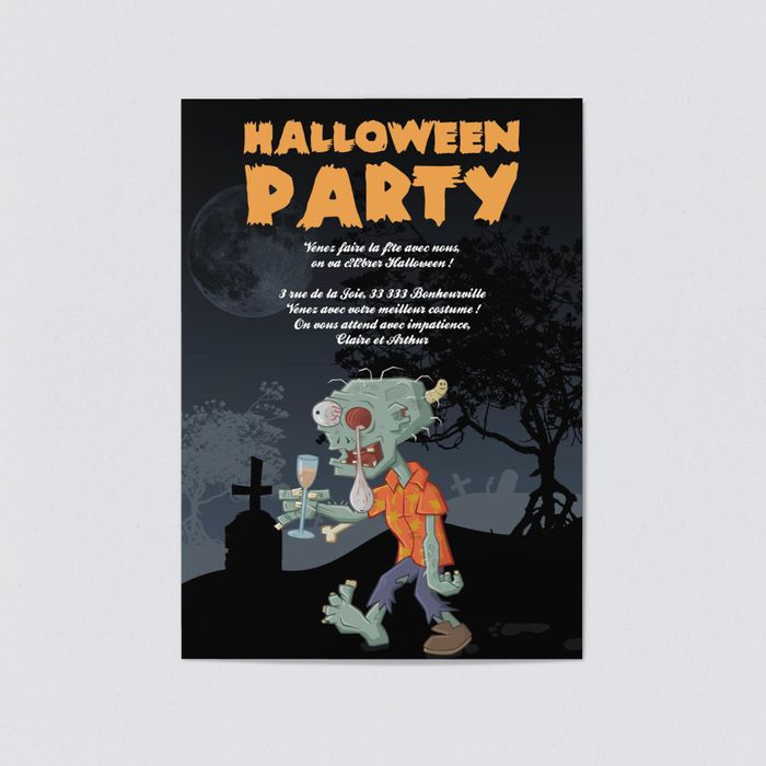 Pour l’organisation d’une telle soirée, il faut absolument des cartes appropriées et bonnyprints.fr a tout prévu. Nos designers ont créé cette sélection d’invitations d’Halloween à personnaliser pour votre évènement : des motifs enfantins pour des goûters ou encore des illustrations façon BD représentant des cimetières ou des maisons hantées, laissant présager une soirée d’enfer. Quelle que soit la fête que vous préparez pour Halloween, ces cartes d’invitation d’Halloween à personnaliser sauront parfaitement illustrer le propos. Nos designs s’inspirent de cette fête si riche en symboles et aucune icône n’est oubliée, du zombi à l’araignée, des fantômes en draps blancs aux têtes de morts, vos cartes d’invitation d’Halloween vont faire fureur. Pour la touche finale, commandez vos invitations d’Halloween accompagnées des enveloppes orange vif, pour un effet surprise garanti à l’ouverture de la boîte aux lettres.
